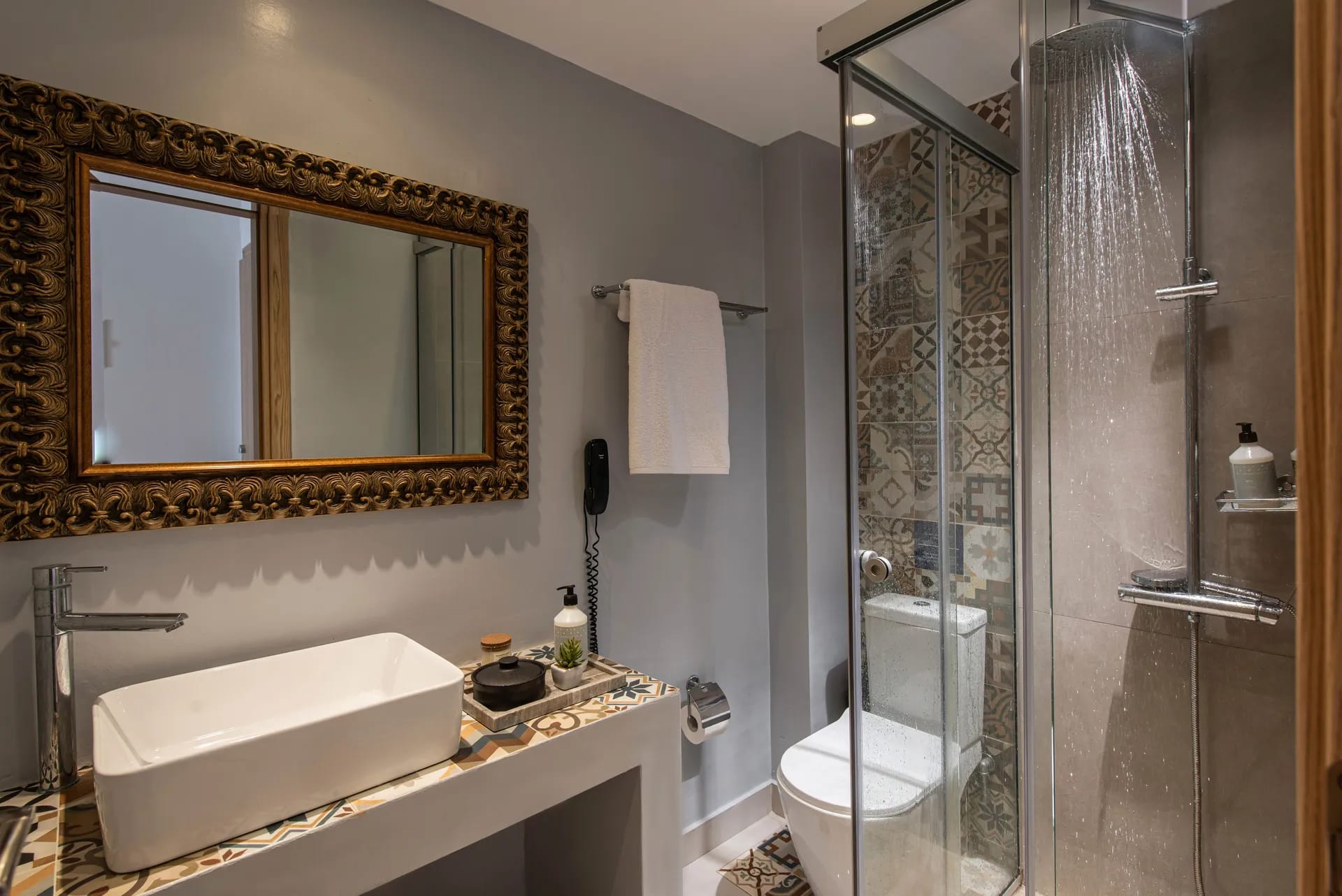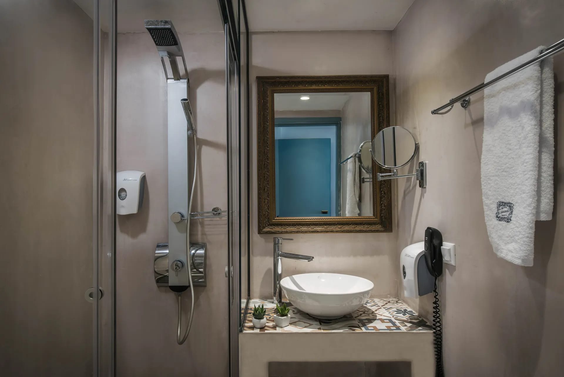 Elegantly designed guestrooms in contemporary style and warm colors that feature, comfortable beds, high-speed internet access, individually controlled air-conditioning, fridge with welcome bottle of water, 40’’ flat screen HD TV with free satellite channels, direct dial telephone, coffee making facilities and safe deposit box. The bathroom includes a shower, hairdryer, bathrobes and personal care products. All rooms have a private balcony with pool or street view.